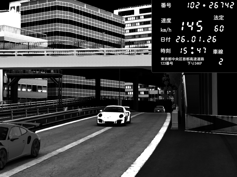 | 2026/01/26 15:47 | C1外回り 新富町 | 148 / 60 km/h | LR-RICE | Porsche 911 GT3 RS | CAPTURE |