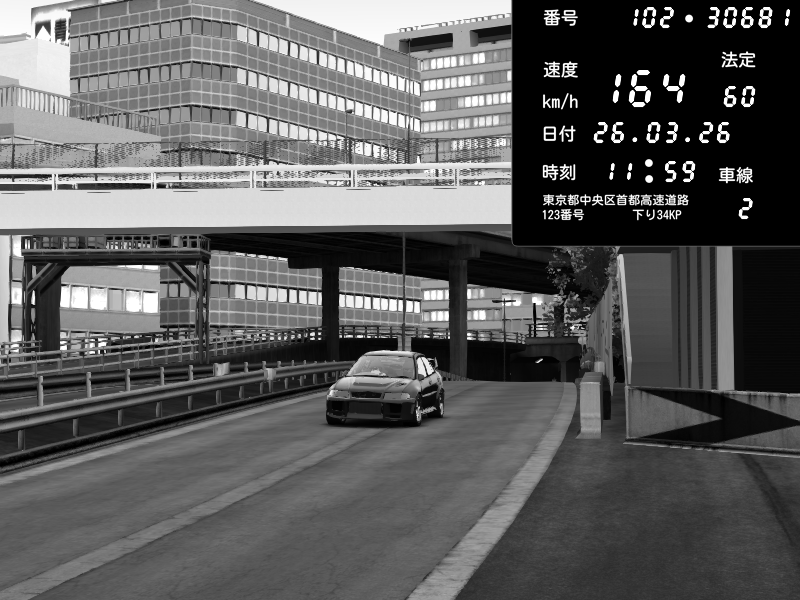| 2026/03/26 11:59 | C1外回り 新富町 | 164 / 60 km/h | kawaju | Mitsubishi Lancer Evolution V Wangan Spec | CAPTURE |