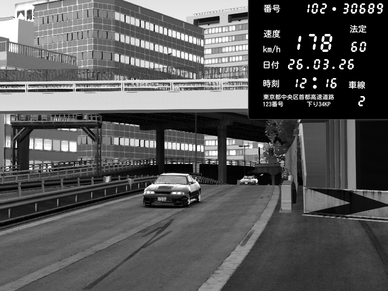 | 2026/03/26 12:16 | C1外回り 新富町 | 178 / 60 km/h | omafu | Nissan Skyline GTR R33 (S3 - Wangan) | CAPTURE |