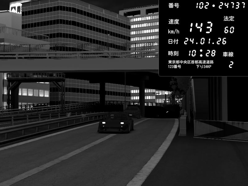 | 2026/01/24 11:37 | C1外回り 新富町 | 179 / 60 km/h | funifuni | Honda S2000 (AP2 - Legendary) | CAPTURE |