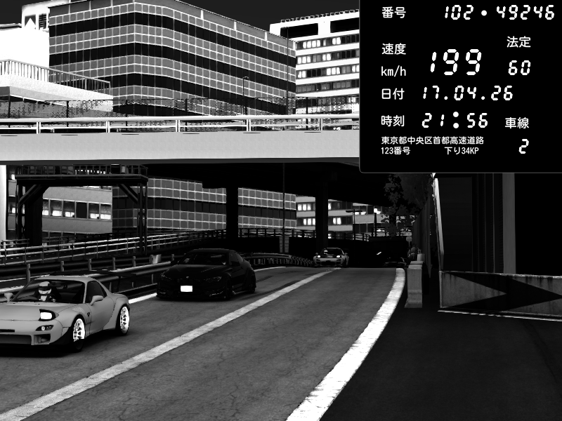 | 2026/04/17 22:07 | C1外回り 新富町 | 177 / 60 km/h | MiriaP | Mazda RX-7 FD3S RE Amemiya | CAPTURE |