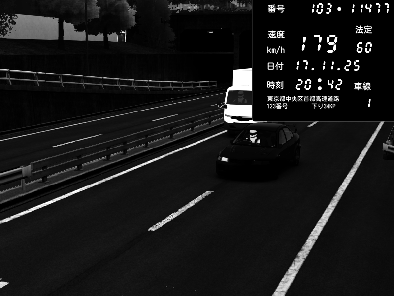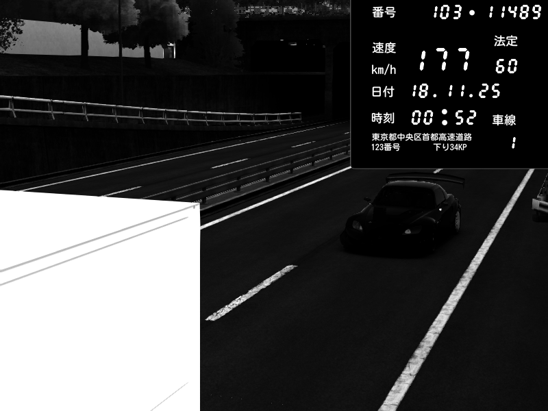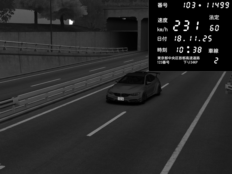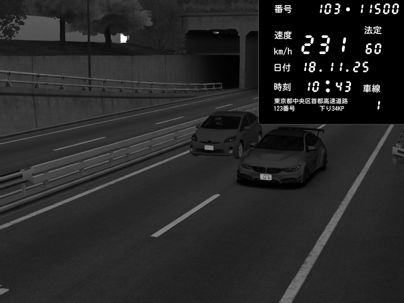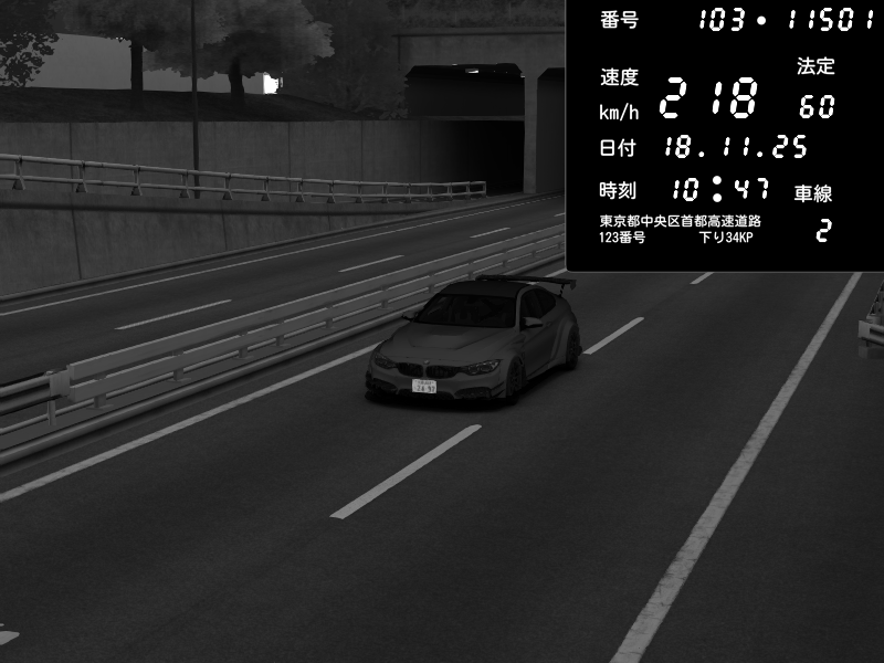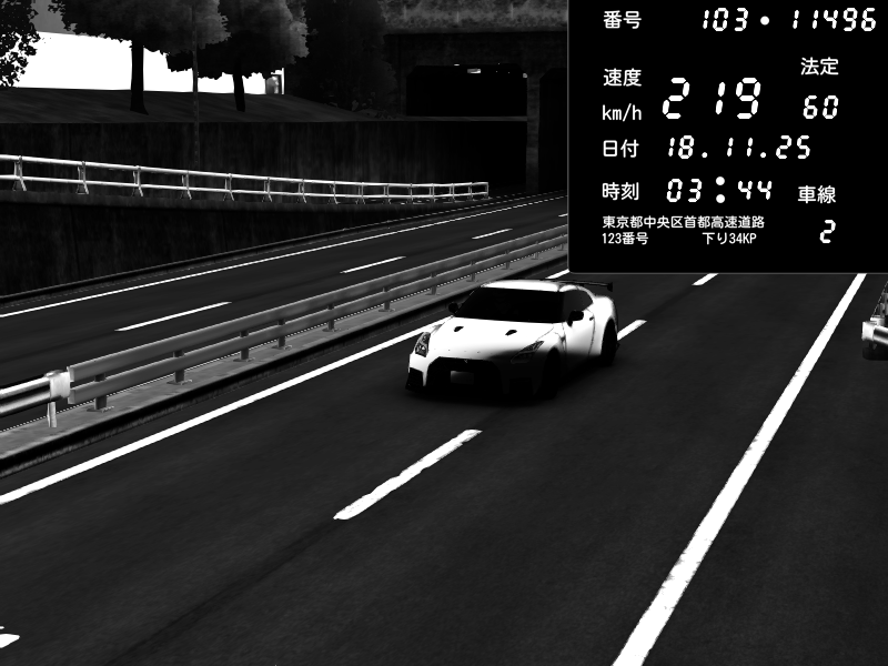 | 2025/11/18 03:55 | C1内回り 銀座 | 224 / 60 km/h | ctrlz | Nissan GT-R NISMO 2017 | CAPTURE |
