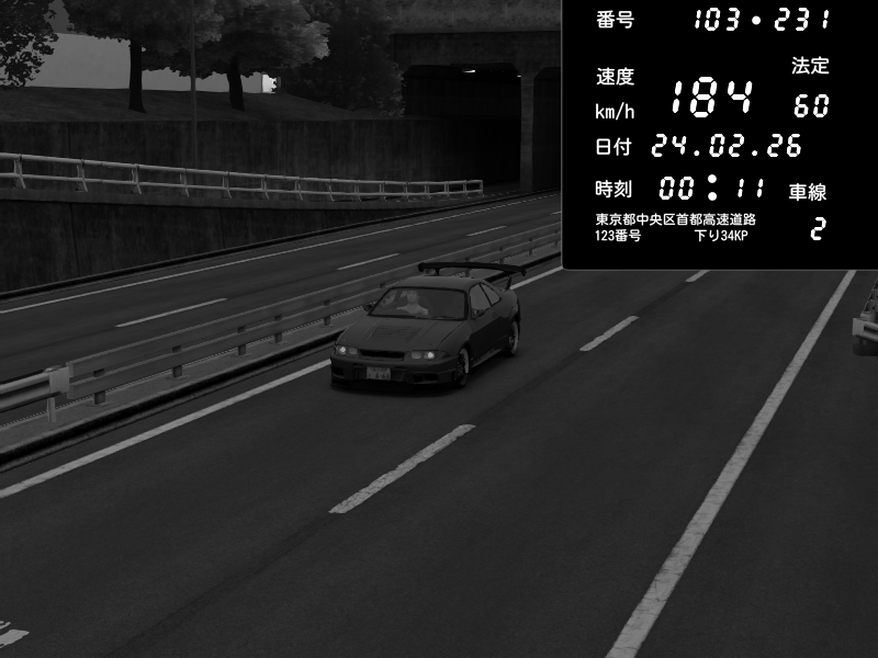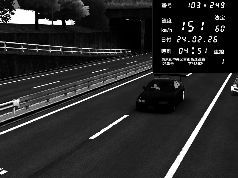 | 2026/02/24 04:51 | C1内回り 銀座 | 151 / 60 km/h | meng | Nissan Skyline GTR R33 (S3 - Wangan) | CAPTURE |