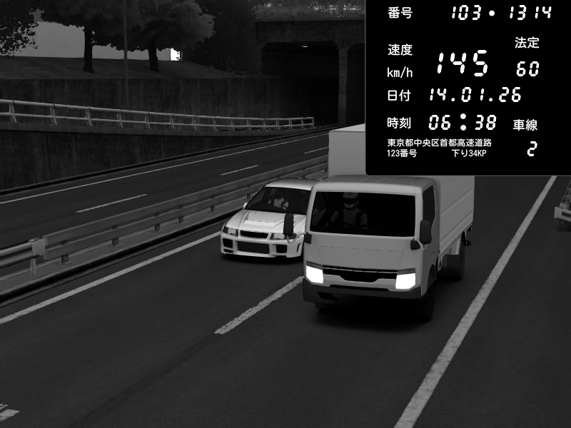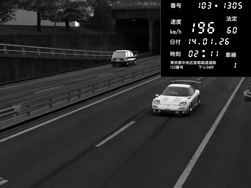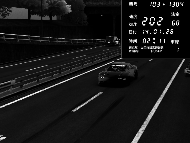 | 2026/01/14 02:11 | C1内回り 銀座 | 202 / 60 km/h | PEUGEOT406 | Pit Road M - Mitsubishi GTO Twin Turbo | CAPTURE |