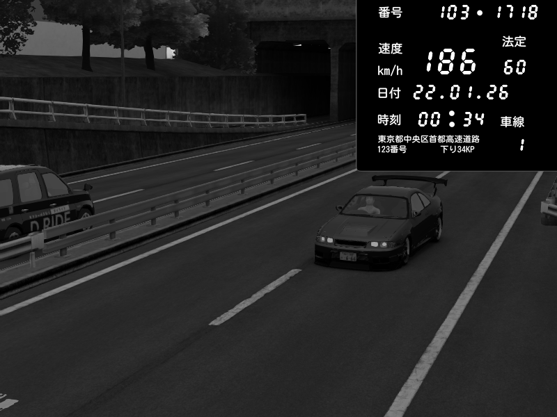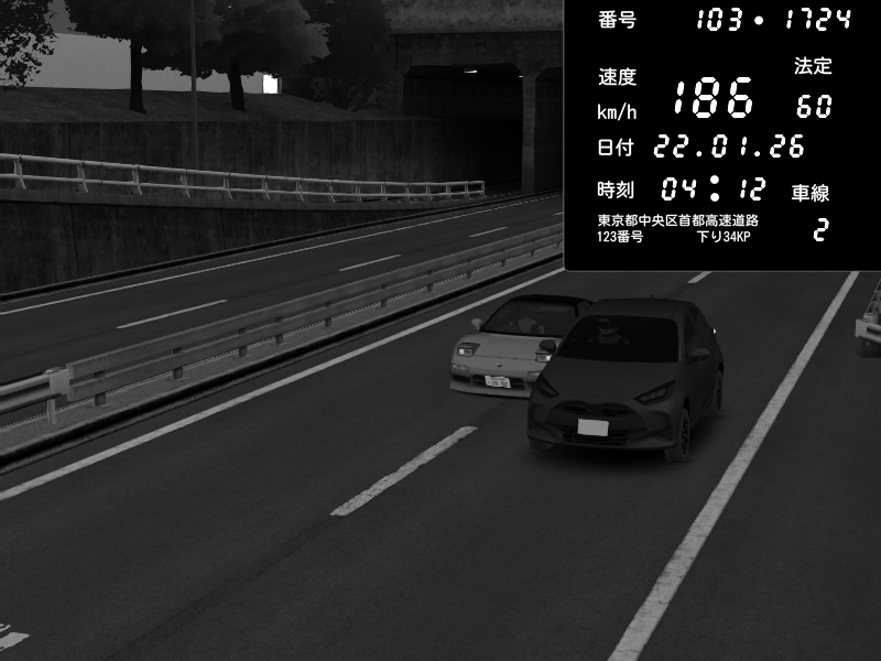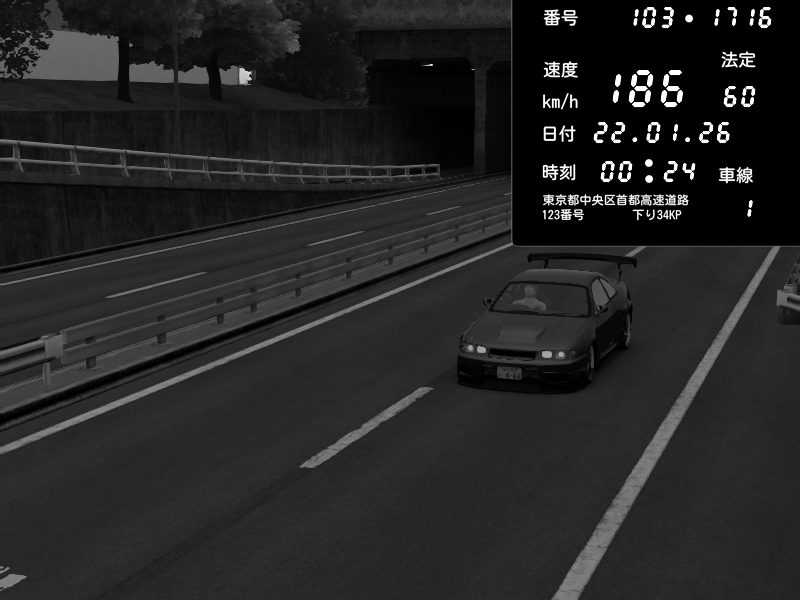 | 2026/01/22 00:24 | C1内回り 銀座 | 186 / 60 km/h | gc8 lover | Nissan Skyline GTR R33 (S3 - Wangan) | CAPTURE |