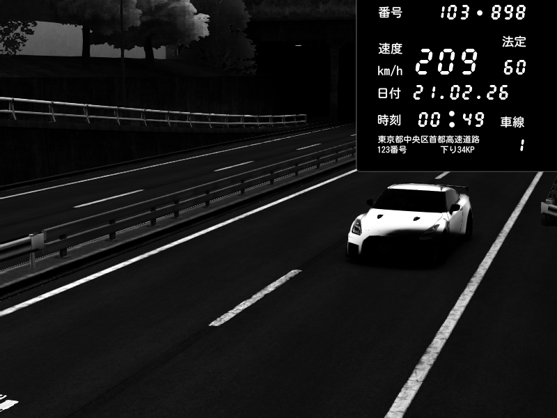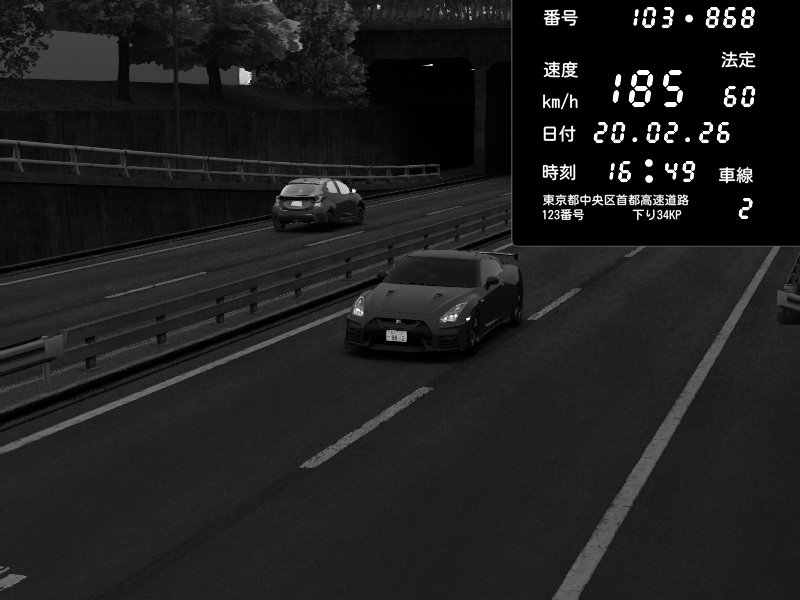 | 2026/02/20 16:49 | C1内回り 銀座 | 185 / 60 km/h | KH | Nissan GT-R NISMO 2017 | CAPTURE |