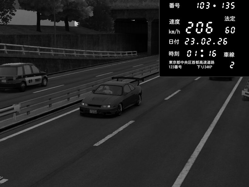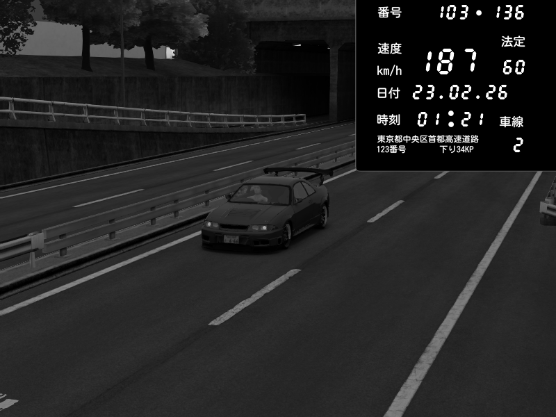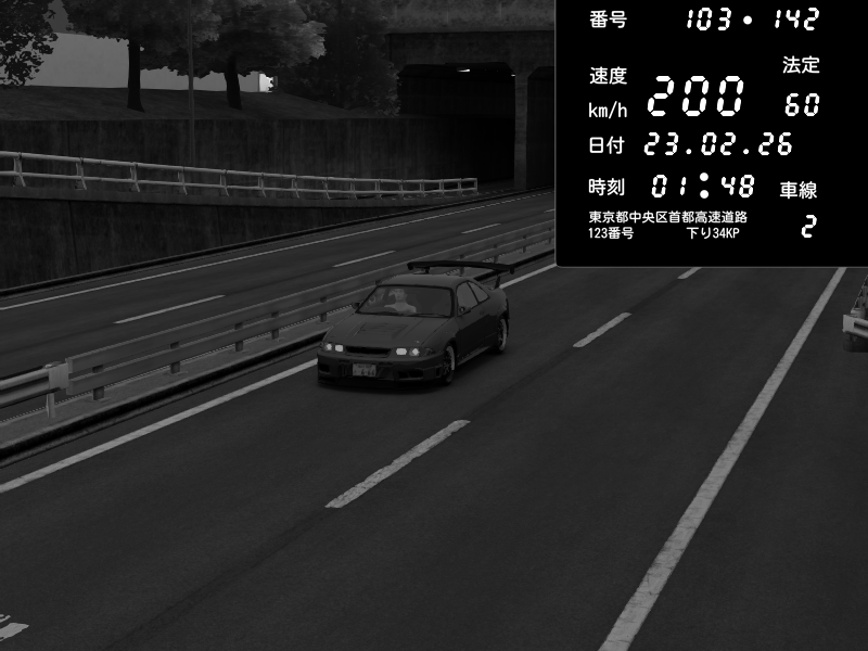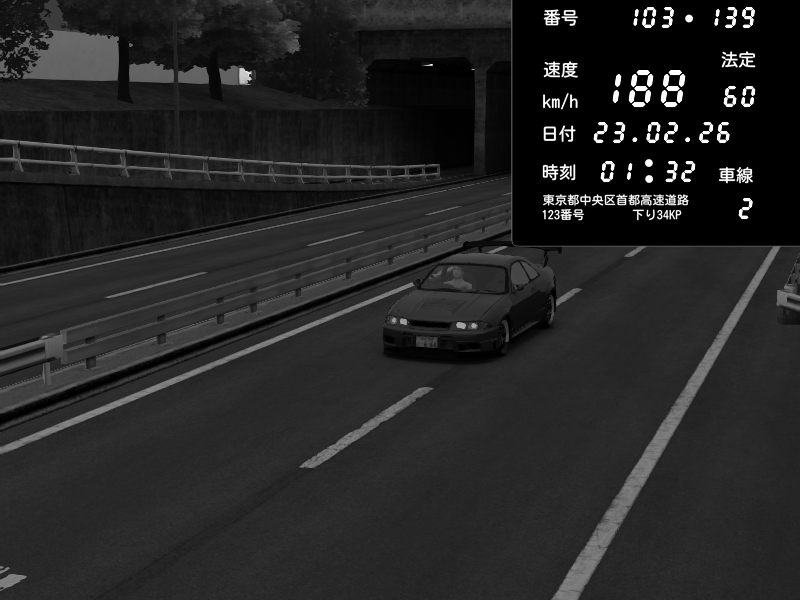 | 2026/02/23 01:48 | C1内回り 銀座 | 200 / 60 km/h | gc8 lover | Nissan Skyline GTR R33 (S3 - Wangan) | CAPTURE |