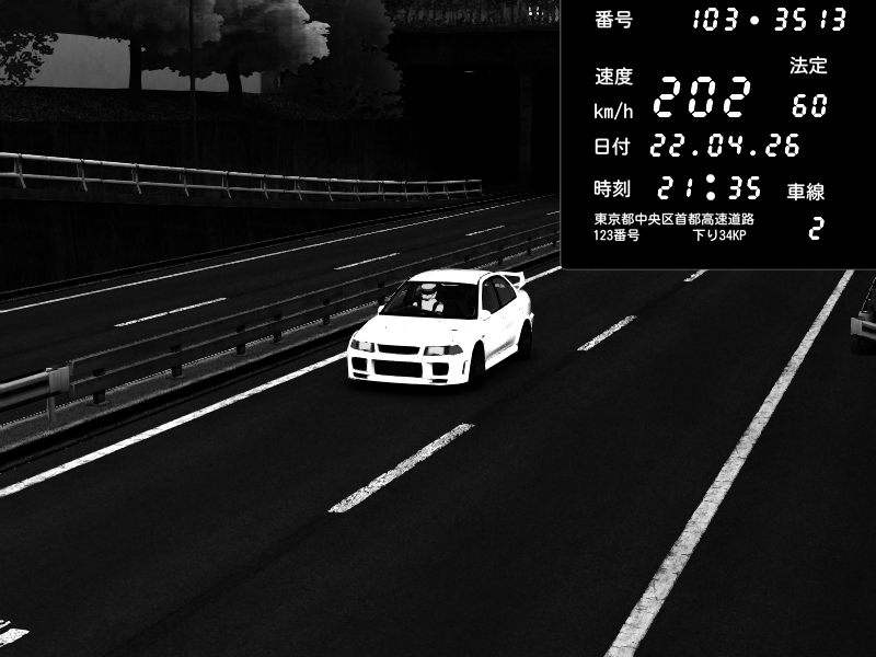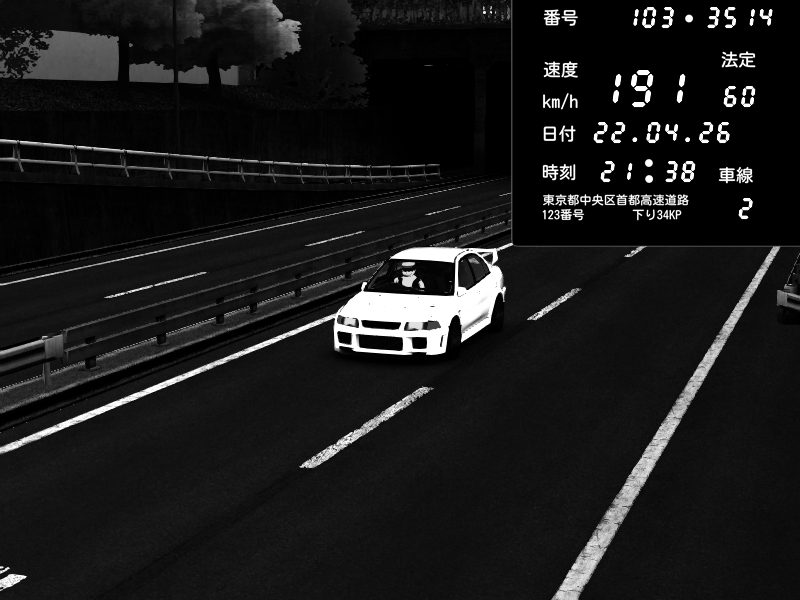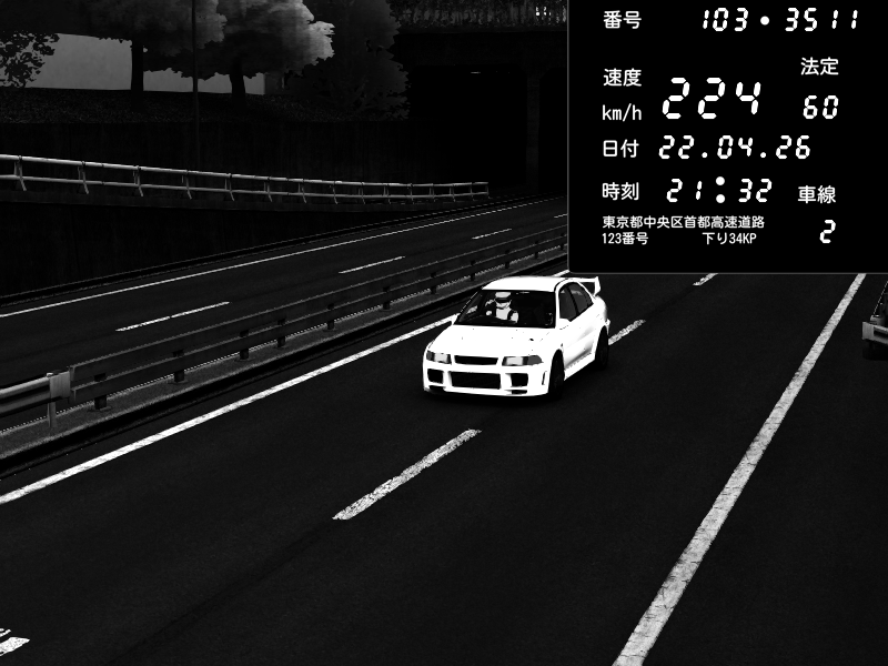| 2026/04/21 22:46 | C1内回り 銀座 | 161 / 60 km/h | op222267 | Mitsubishi Lancer Evolution V Wangan Spec | CAPTURE |
