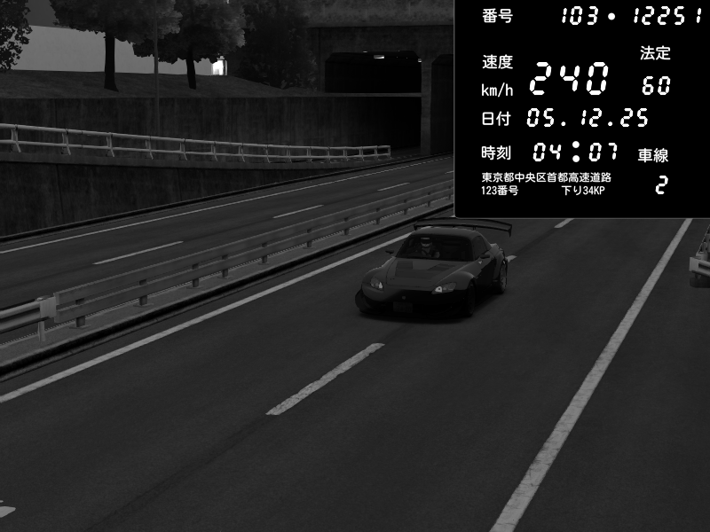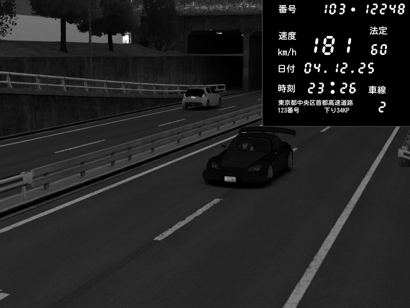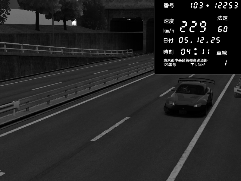 | 2025/12/05 04:11 | C1内回り 銀座 | 229 / 60 km/h | Alice | Honda S2000 Turbo GT1 Amuse (AP1) | CAPTURE |