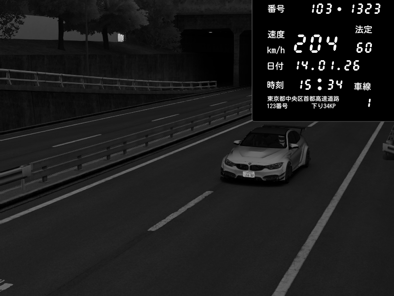 | 2026/01/14 00:54 | C1内回り 銀座 | 204 / 60 km/h | Ψ_S C Λ R Ξ D_85 | BMW M4 crash.Sp Varis Widebody | CAPTURE |