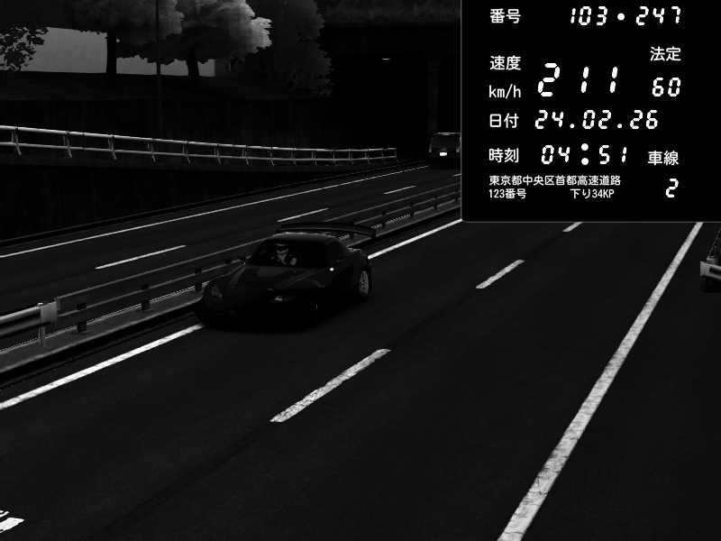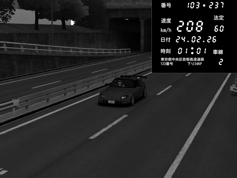 | 2026/02/23 22:49 | C1内回り 銀座 | 211 / 60 km/h | clocks13 | Honda S2000 (AP2 - Legendary) | CAPTURE |