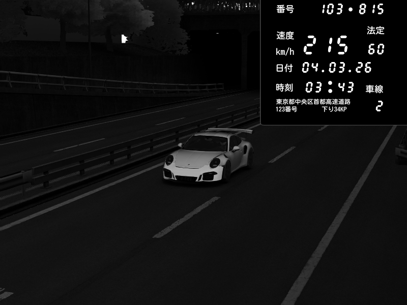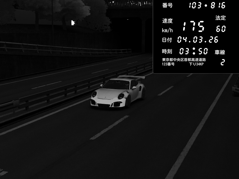 | 2026/03/04 21:44 | C1内回り 銀座 | 143 / 60 km/h | ウニ | Porsche 911 GT3 RS | CAPTURE |