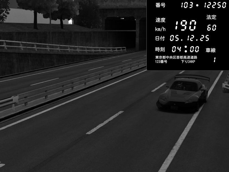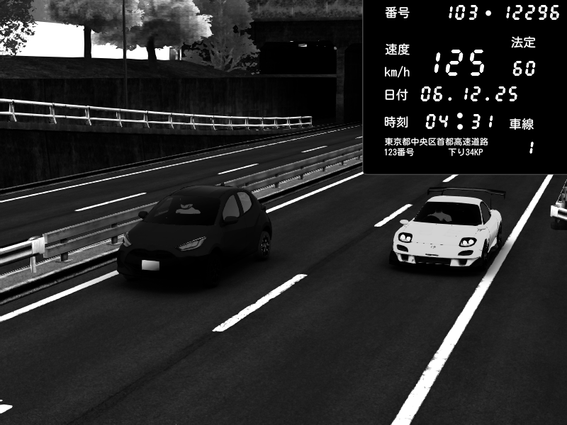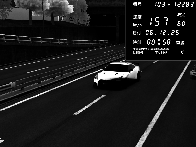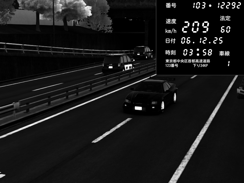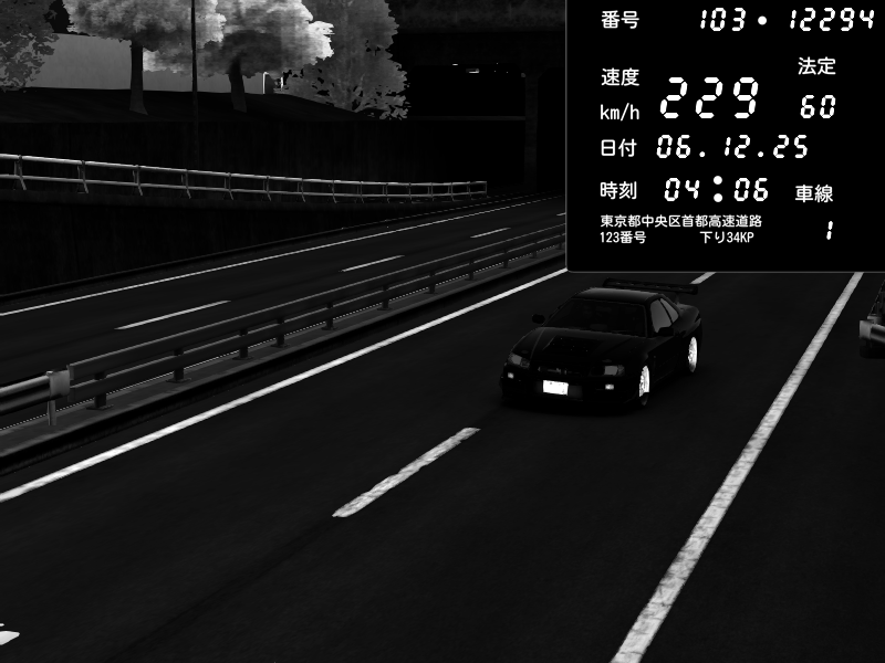 | 2025/12/04 04:10 | C1内回り 銀座 | 140 / 60 km/h | Playboi Carti | Nissan Skyline GTR R33 (S3 - Wangan) | CAPTURE |