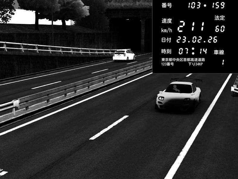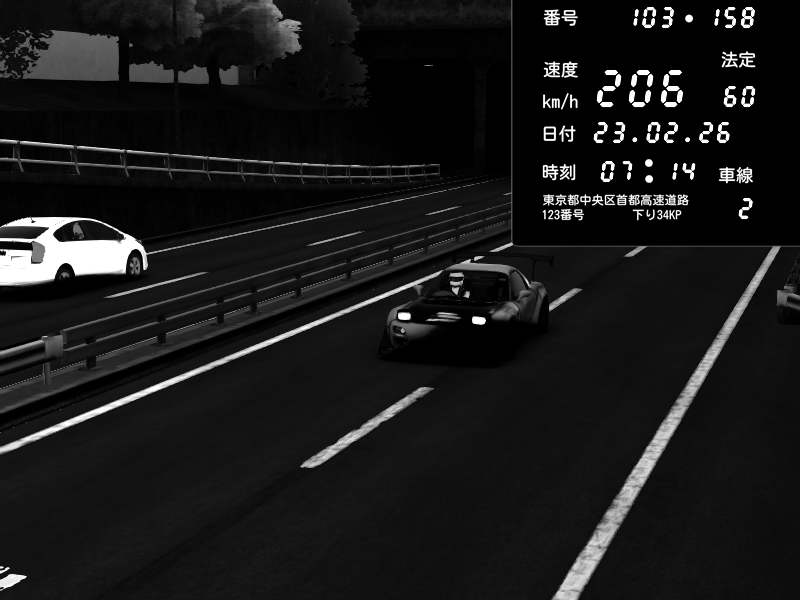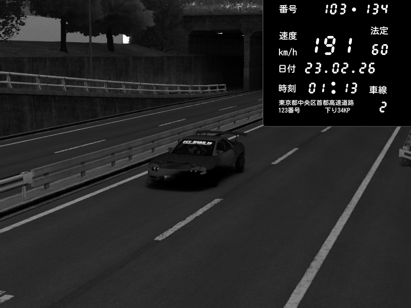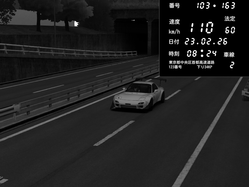 | 2026/02/22 23:20 | C1内回り 銀座 | 178 / 60 km/h | Player | Mazda RX-7 FD3S RE Amemiya | CAPTURE |