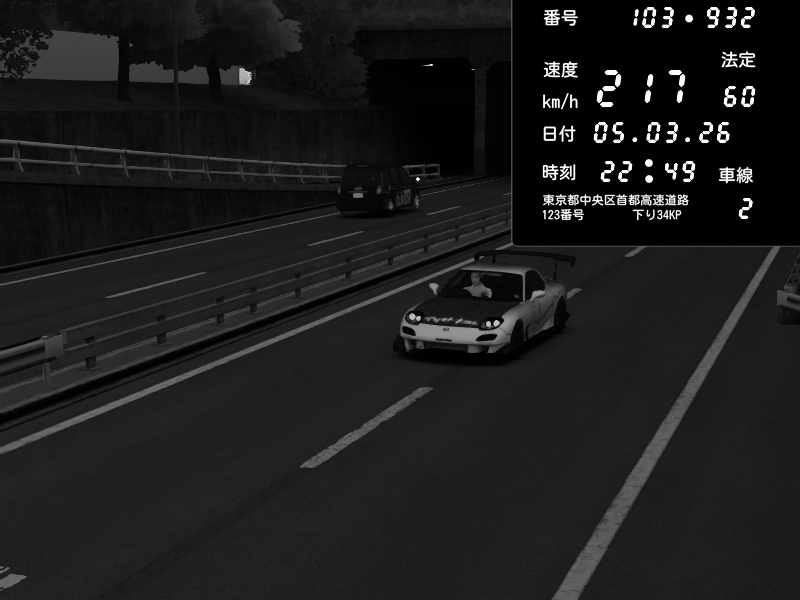| 2026/03/05 22:59 | C1内回り 銀座 | 213 / 60 km/h | Thotimus Prime | Mazda RX-7 FD3S RE Amemiya | CAPTURE |