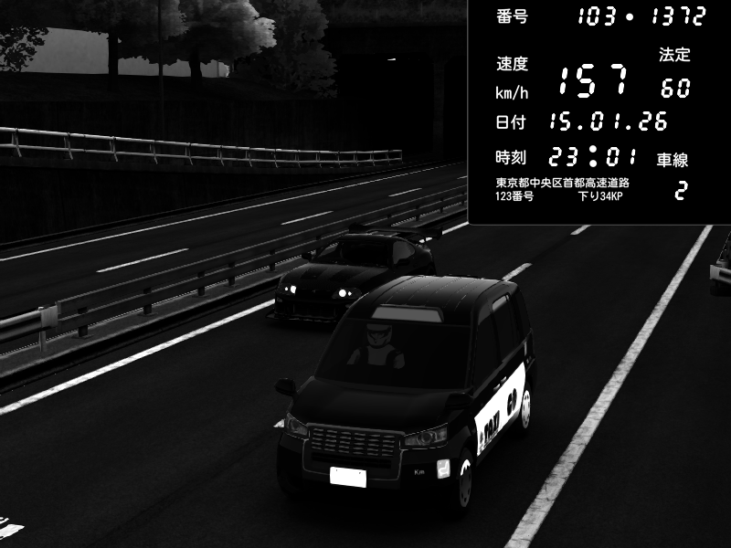 | 2026/01/15 22:50 | C1内回り 銀座 | 182 / 60 km/h | yoko3840 | Nissan GT-R NISMO 2017 | CAPTURE |