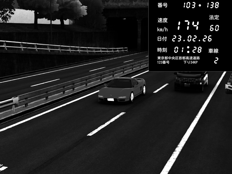 | 2026/02/22 23:24 | C1内回り 銀座 | 167 / 60 km/h | ALFA | Honda NSX [NA1] PVLSX | CAPTURE |