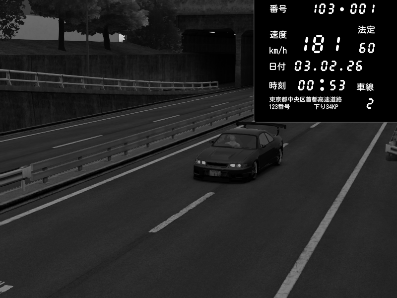 | 2026/02/03 00:53 | C1内回り 銀座 | 181 / 60 km/h | gc8 lover | Nissan Skyline GTR R33 (S3 - Wangan) | CAPTURE |