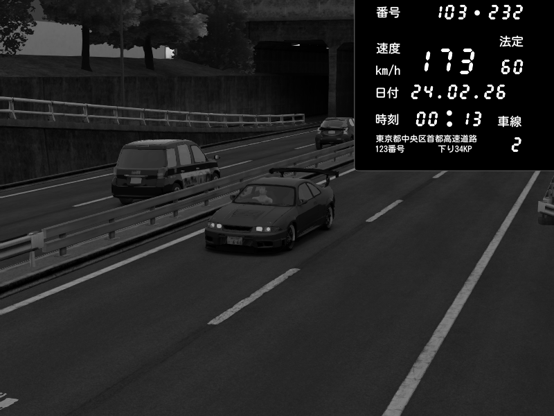 | 2026/02/24 00:13 | C1内回り 銀座 | 173 / 60 km/h | gc8 lover | Nissan Skyline GTR R33 (S3 - Wangan) | CAPTURE |