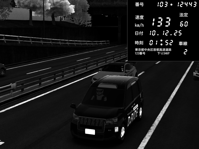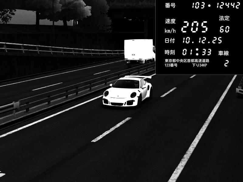 | 2025/12/10 01:33 | C1内回り 銀座 | 205 / 60 km/h | RKO | Porsche 911 GT3 RS | CAPTURE |