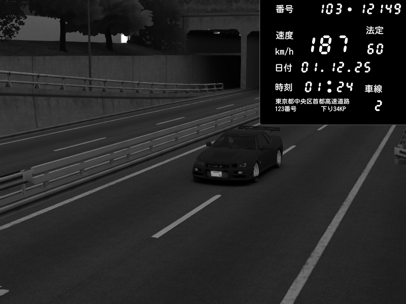 | 2025/12/01 01:24 | C1内回り 銀座 | 187 / 60 km/h | - Lonely.Driver - | Nissan Skyline GT-R R34 Nismo Omori Factory S1 | CAPTURE |