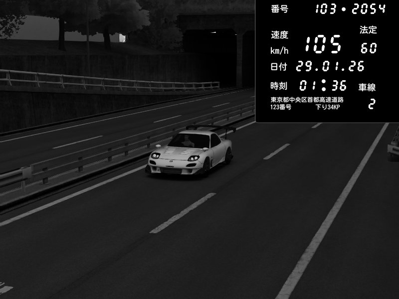 | 2026/01/29 01:36 | C1内回り 銀座 | 105 / 60 km/h | - Lonely.Driver - | Mazda RX-7 FD3S RE Amemiya | CAPTURE |