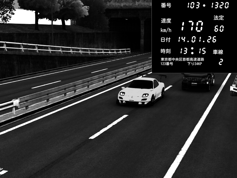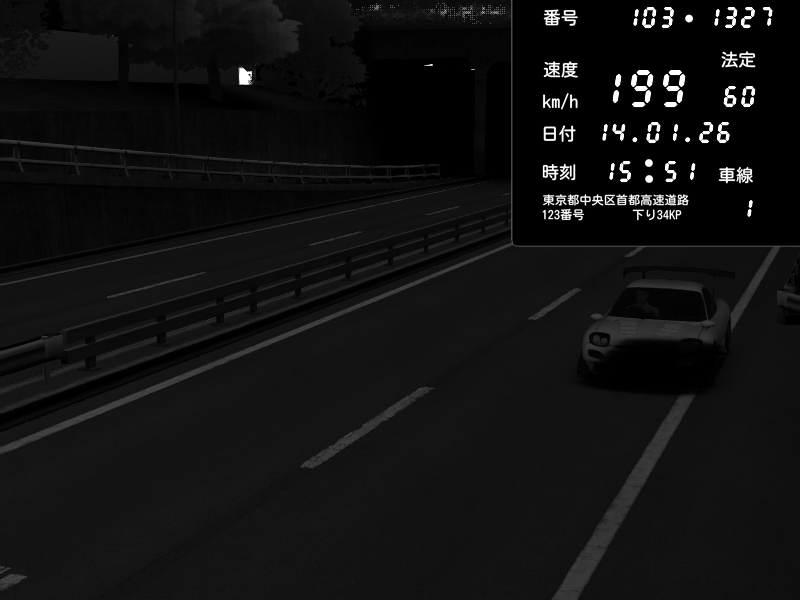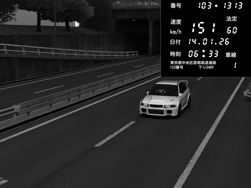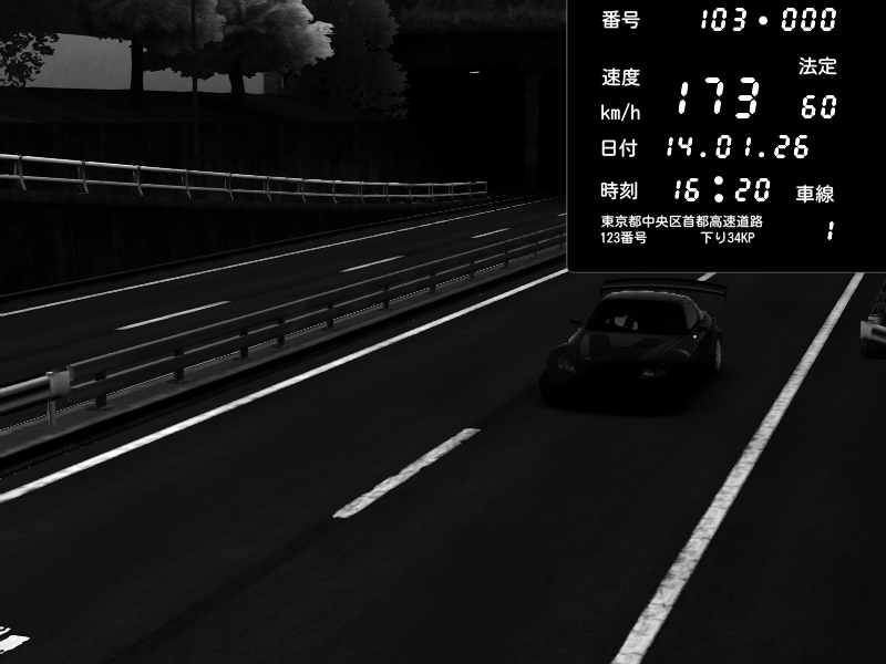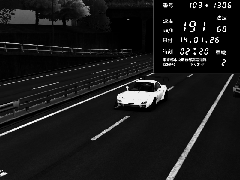 | 2026/01/14 01:51 | C1内回り 銀座 | 173 / 60 km/h | PEUGEOT406 | Pit Road M - Mitsubishi GTO Twin Turbo | CAPTURE |