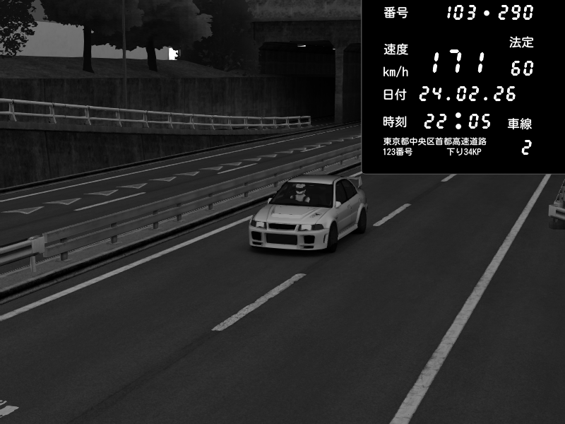| 2026/02/23 22:44 | C1内回り 銀座 | 174 / 60 km/h | clocks13 | Honda S2000 (AP2 - Legendary) | CAPTURE |