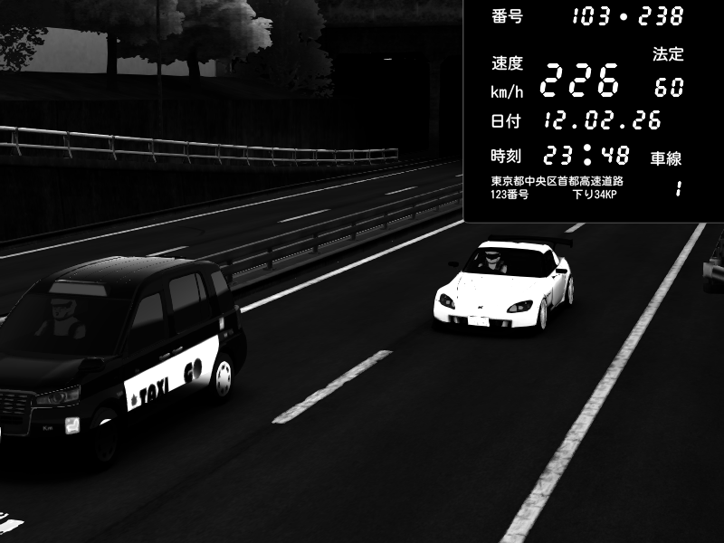 | 2026/02/12 23:48 | C1内回り 銀座 | 226 / 60 km/h | 木曜が一番疲れている | Honda S2000 (AP2 - Legendary) | CAPTURE |