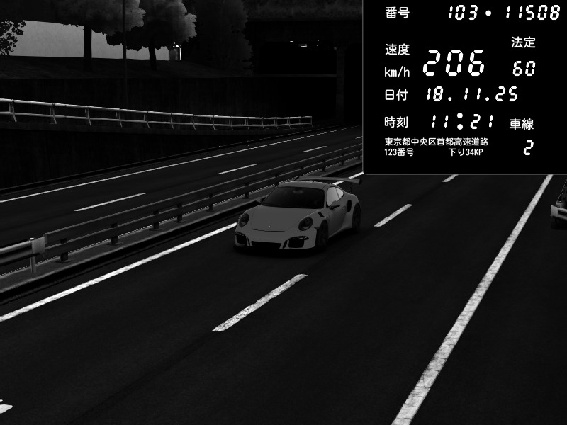 | 2025/11/17 21:26 | C1内回り 銀座 | 218 / 60 km/h | d3ck5rq | Porsche 911 GT3 RS | CAPTURE |