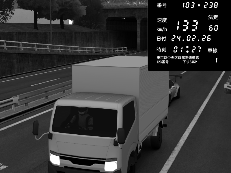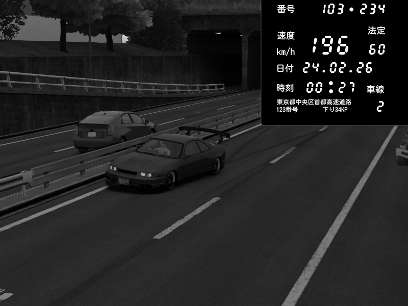 | 2026/02/24 07:00 | C1内回り 銀座 | 141 / 60 km/h | CG | Nissan GT-R NISMO 2017 | CAPTURE |