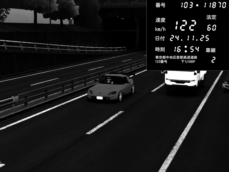 | 2025/11/24 16:54 | C1内回り 銀座 | 122 / 60 km/h | gogodelsol1600sir | Honda S2000 (AP2 - Legendary) | CAPTURE |