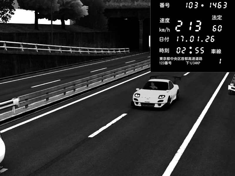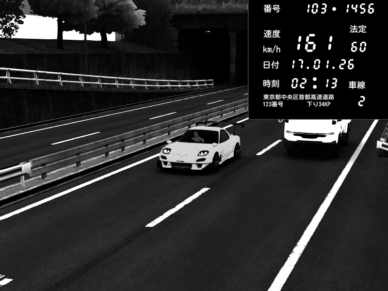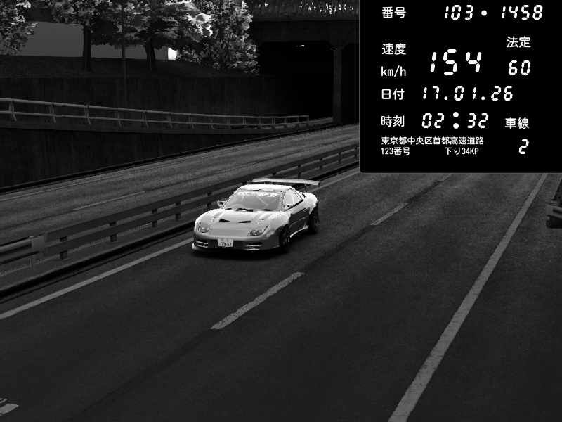 | 2026/01/17 02:40 | C1内回り 銀座 | 176 / 60 km/h | Solar Queen | Mazda RX-7 FD3S RE Amemiya | CAPTURE |