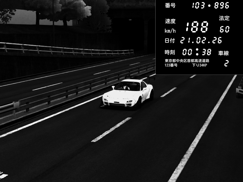 | 2026/02/20 03:58 | C1内回り 銀座 | 130 / 60 km/h | FLOOK TH | Mazda RX-7 FD3S RE Amemiya | CAPTURE |