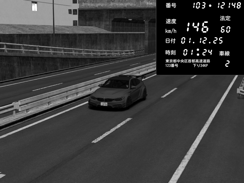 | 2025/12/01 00:53 | C1内回り 銀座 | 206 / 60 km/h | Lukazi | BMW M4 crash.Sp Varis Widebody | CAPTURE |