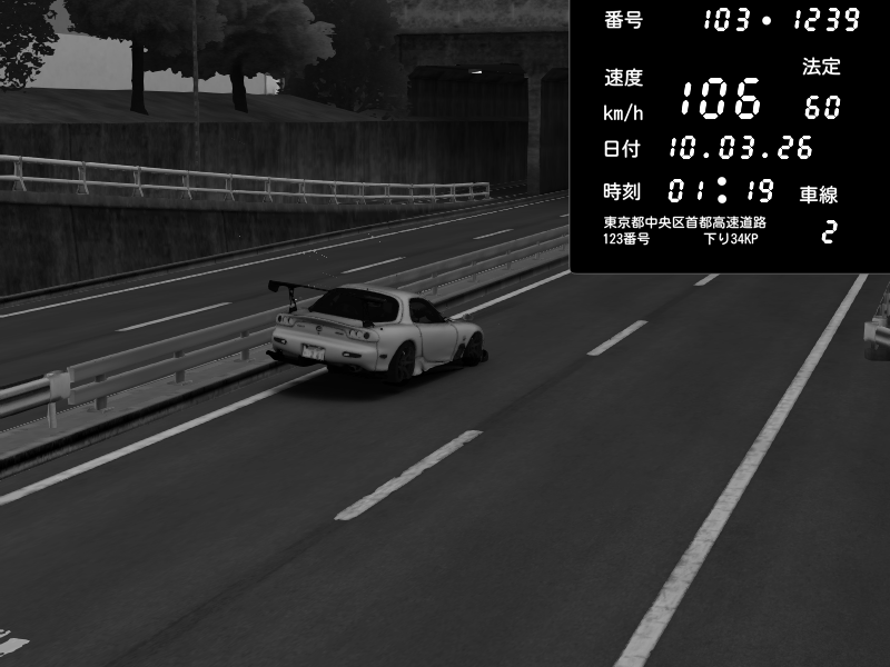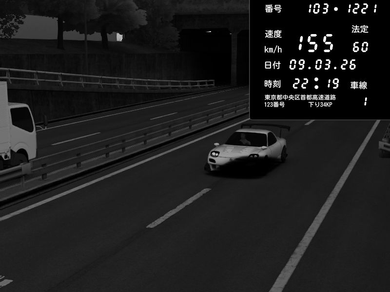 | 2026/03/09 03:18 | C1内回り 銀座 | 224 / 60 km/h | gen kegmire | Pit Road M - Mitsubishi GTO Twin Turbo | CAPTURE |
