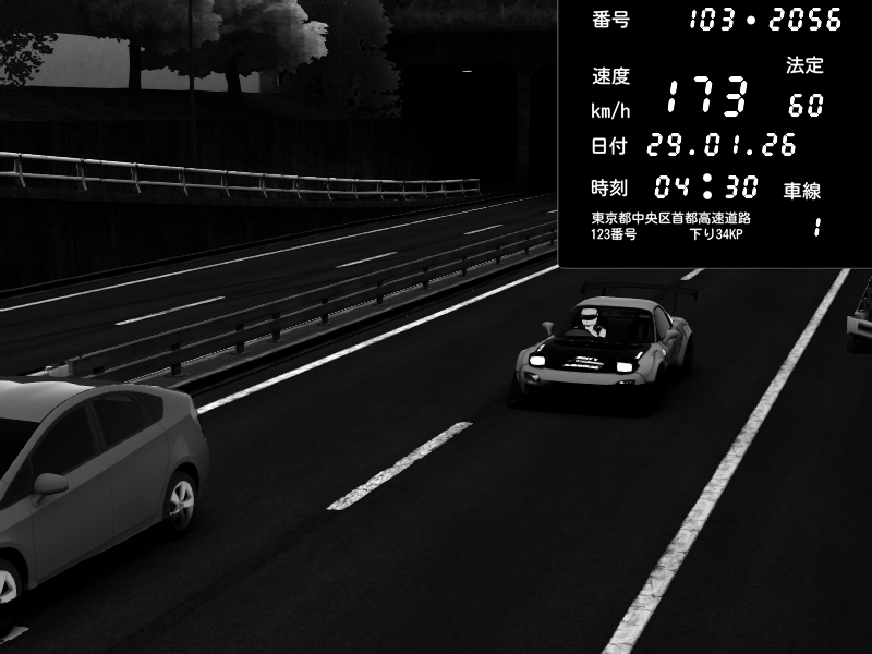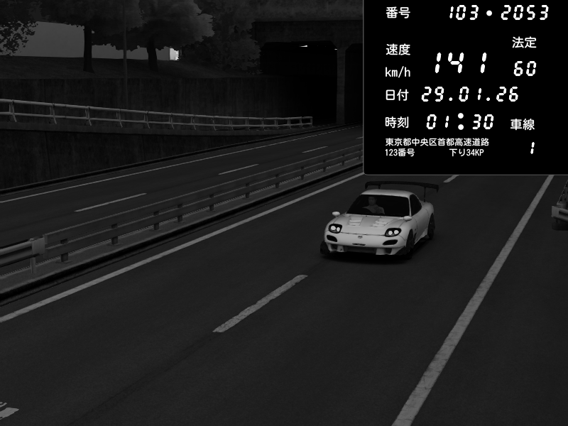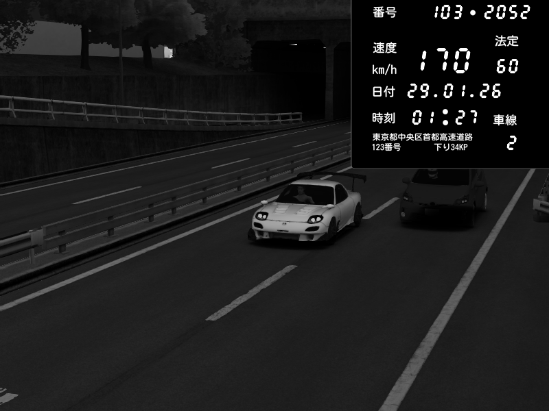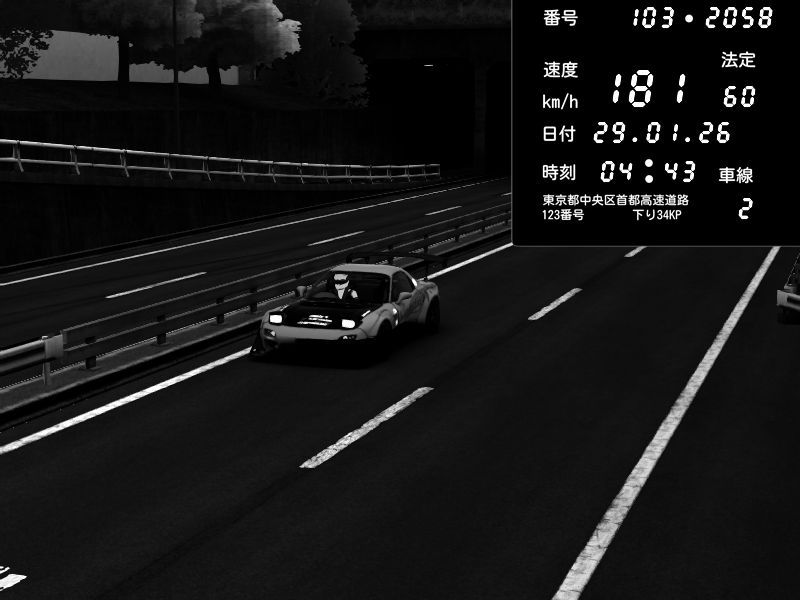 | 2026/01/29 01:27 | C1内回り 銀座 | 170 / 60 km/h | - Lonely.Driver - | Mazda RX-7 FD3S RE Amemiya | CAPTURE |