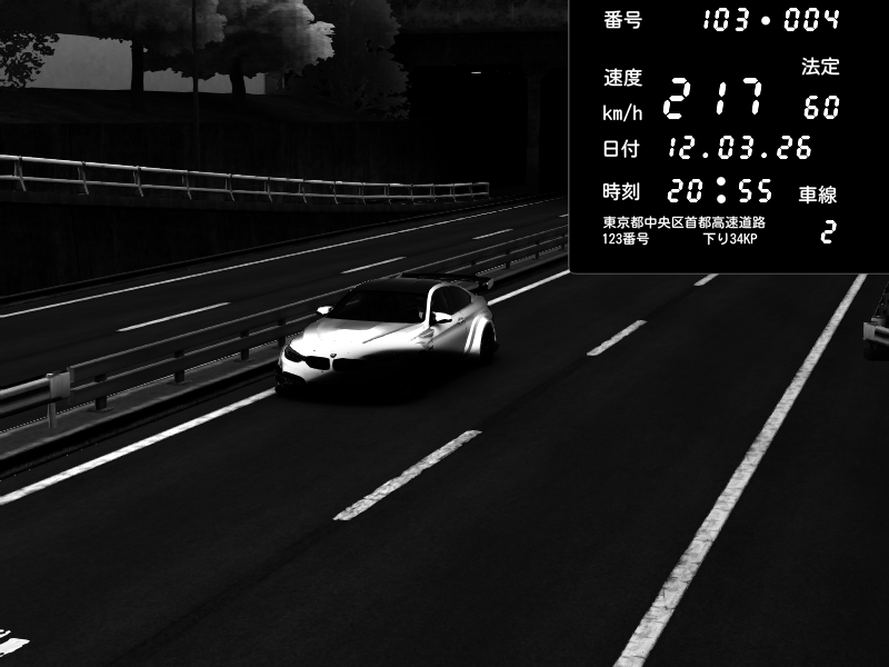 | 2026/03/10 23:02 | C1内回り 銀座 | 190 / 60 km/h | yo_teej | BMW M4 crash.Sp Varis Widebody | CAPTURE |