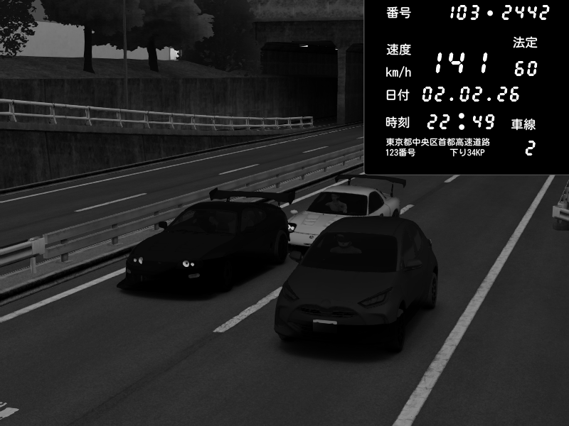 | 2026/02/02 18:14 | C1内回り 銀座 | 189 / 60 km/h | G29(LUT)&32TV60Hz3画面老人晩酌中 | Honda S2000 Turbo GT1 Amuse (AP1) | CAPTURE |