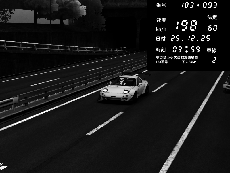| 2025/12/25 00:30 | C1ๅ ๅใ ้ๅบง | 100 / 60 km/h | egg | Mazda RX-7 FD3S FEED Afflux GT3 | CAPTURE |