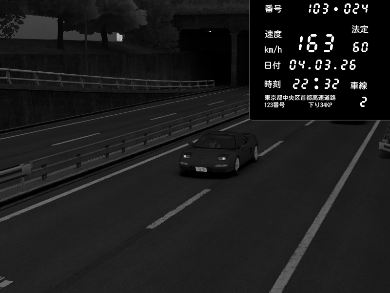 | 2026/03/04 21:56 | C1内回り 銀座 | 159 / 60 km/h | Player | Honda NSX [NA1] PVLSX | CAPTURE |
