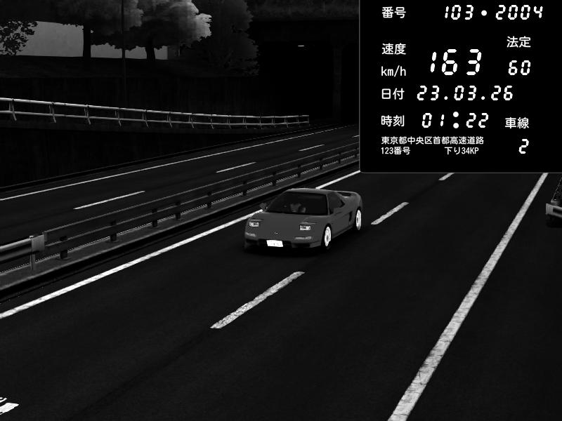 | 2026/03/23 01:22 | C1内回り 銀座 | 163 / 60 km/h | Player | Honda NSX [NA1] PVLSX | CAPTURE |