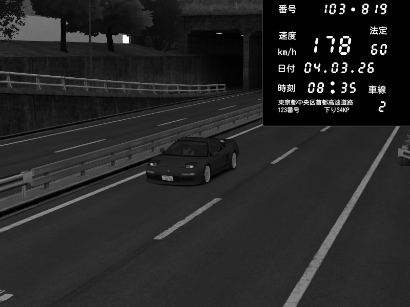| 2026/03/04 19:03 | C1内回り 銀座 | 174 / 60 km/h | homura | Honda NSX [NA1] PVLSX | CAPTURE |