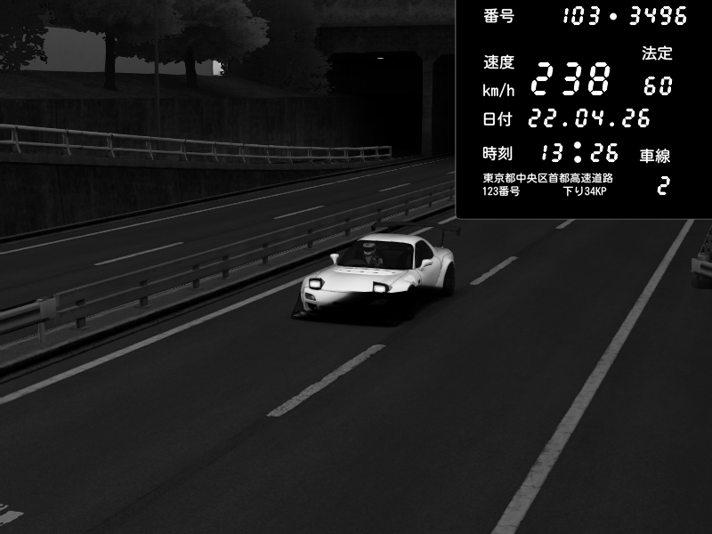 | 2026/04/21 21:51 | C1内回り 銀座 | 232 / 60 km/h | Toraya | Mazda RX-7 FD3S RE Amemiya | CAPTURE |
