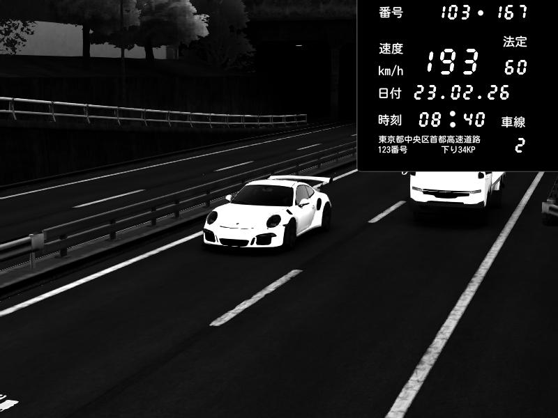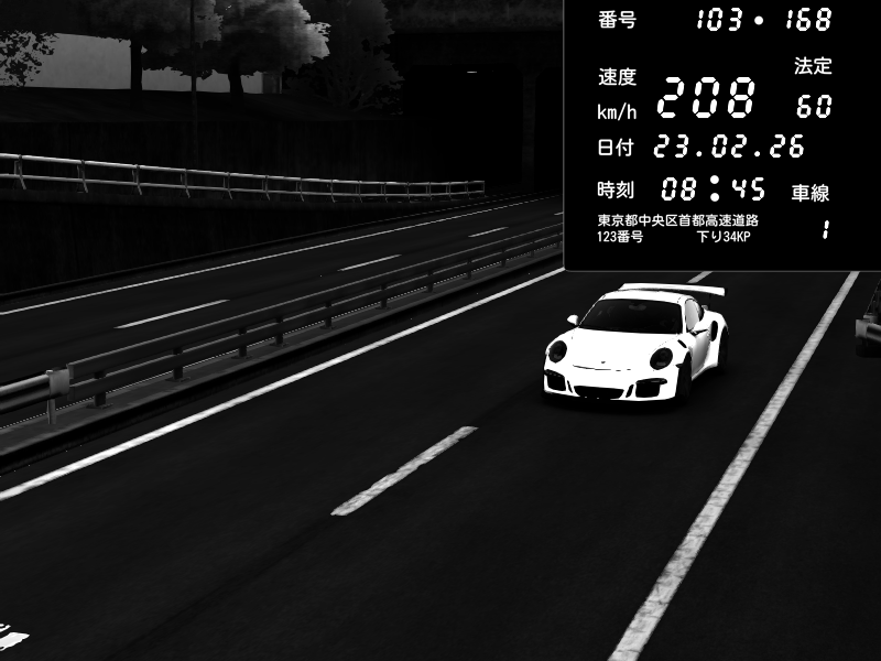 | 2026/02/23 08:29 | C1内回り 銀座 | 209 / 60 km/h | Kit | Porsche 911 GT3 RS | CAPTURE |