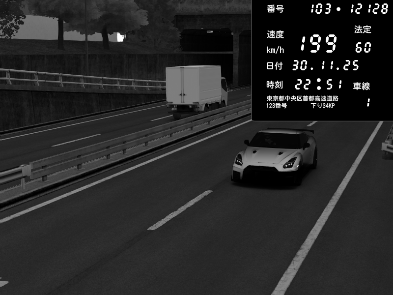 | 2025/11/30 22:51 | C1内回り 銀座 | 199 / 60 km/h | ytterbium | Nissan GT-R NISMO 2017 | CAPTURE |