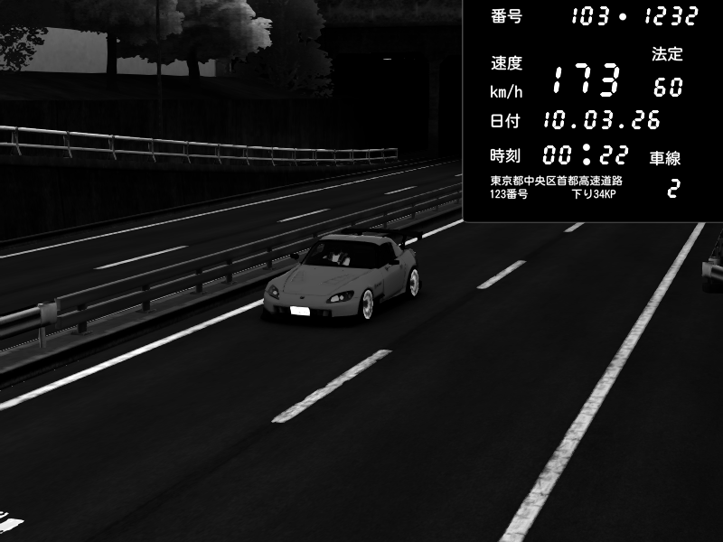 | 2026/03/09 01:40 | C1内回り 銀座 | 176 / 60 km/h | luika | Honda S2000 Turbo GT1 Amuse (AP1) | CAPTURE |