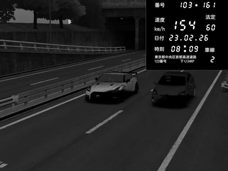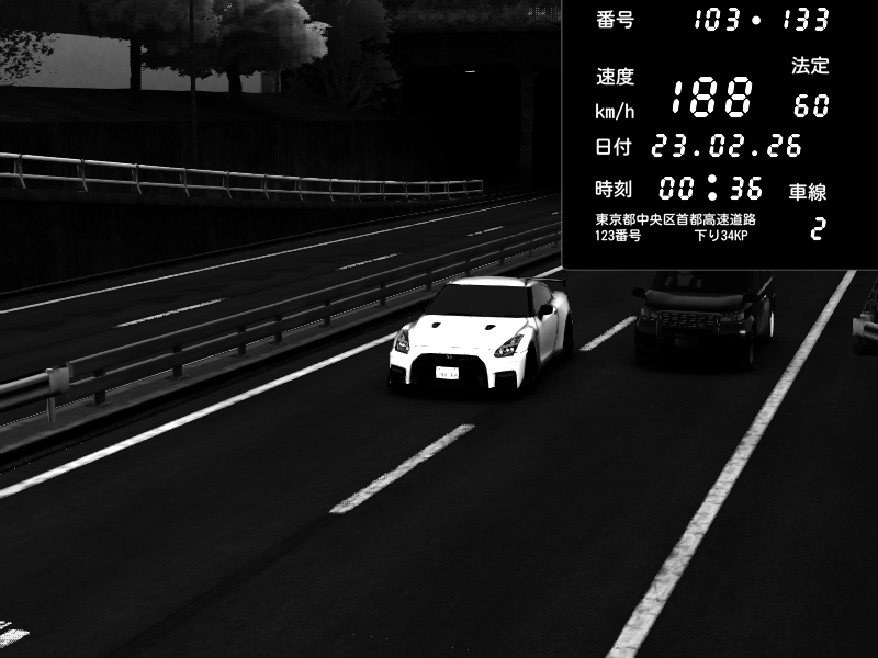 | 2026/02/23 04:35 | C1内回り 銀座 | 173 / 60 km/h | うごく | Nissan GT-R NISMO 2017 | CAPTURE |