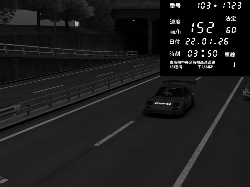 | 2026/01/21 23:11 | C1内回り 銀座 | 172 / 60 km/h | PSC | Mazda RX-7 FD3S RE Amemiya | CAPTURE |