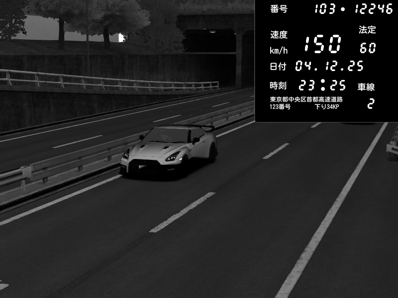 | 2025/12/04 23:25 | C1内回り 銀座 | 150 / 60 km/h | ヤーマン | Nissan GT-R NISMO 2017 | CAPTURE |